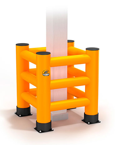 Osłony kolumn zabezpieczają ważne elementy konstukcyjne budynku przed uderzeniami przez pojazdy. Ochrona Kolumny 4-Słupkowa służy do optymalnego zabezpieczenia kolumn i podpór budowlanych prostokątnych, okrągłych lub kwadratowych. Oprócz funkcji ostrzegawczych, osłona kolumny jest wyjątkowo odporna na wszelkie siły uderzenia. Energia uderzenia jest pochłaniana i nie jest kierowana na obszar, który ma być chroniony. Możliwe są różne rozmiary i kształty