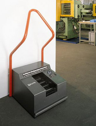Kompaktowa maszyna do czyszczenia spodów obuwia Solamat 90 wyposażone są w 4 przeciwbieżnie obracające się szczotki, oraz 2 szczotki boczne.