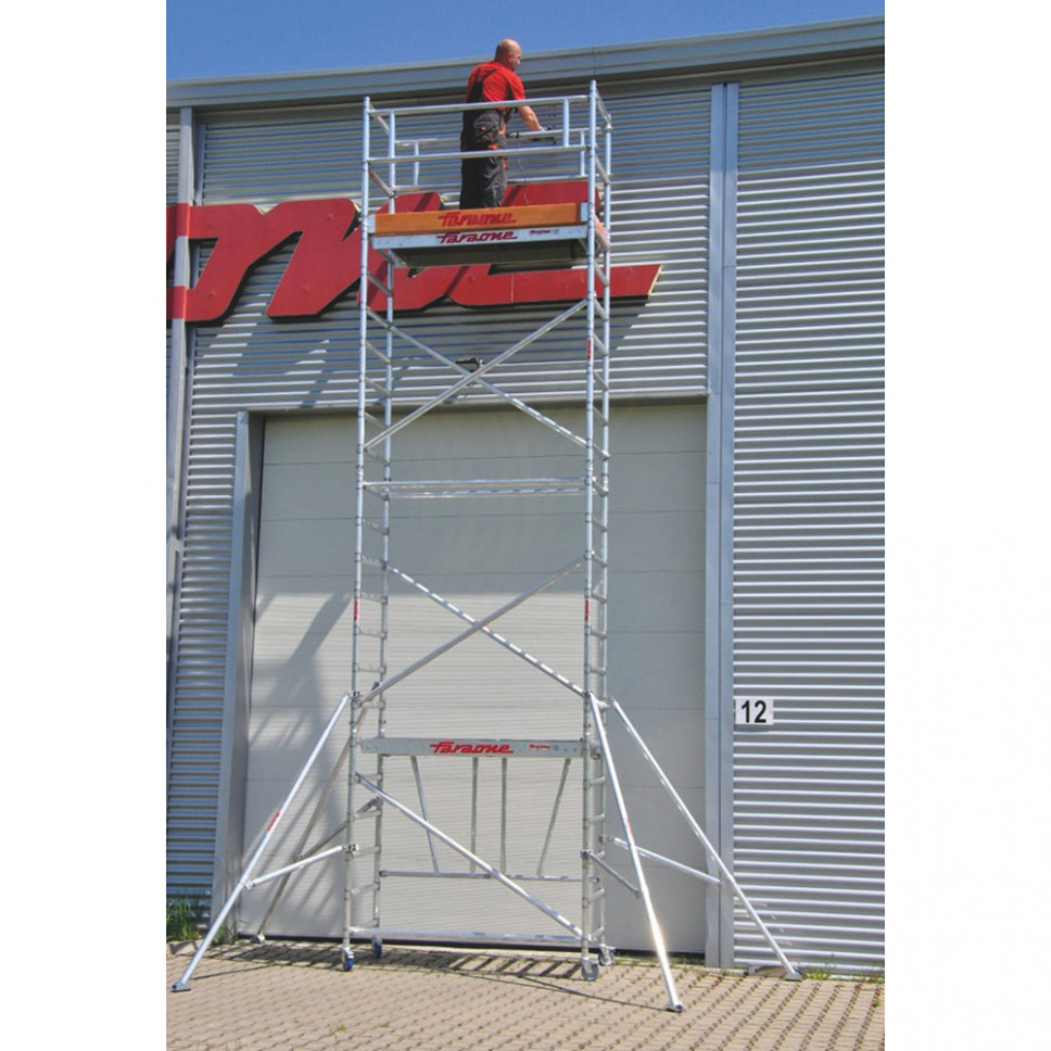Rusztowanie COMPACT jest uniwersalnym i ekonomicznym rozwiązaniem. Rusztowanie modułowe w całości wykonane z aluminium o wysokiej wytrzymałości. Łatwe w montażu dzięki zaczepom szybkiego połączenia i mocnym hakom zaciskowym. Podesty wykonane z aluminiowych ram i sklejki która dzięki odpowiedniej obróbce odporna jest na działanie wody i ma właściwości antypoślizgowe. Bezpieczny dostęp do podestów roboczych od wewnętrznej strony rusztowania poprzez pionowa drabinę, którą tworzą poprzeczki bocznych ram konstrukcji. Łatwe w przemieszczaniu dzięki obrotowym kółkom z hamulcem naciskowym. Dużą stabilność uzyskuje się dzięki wytrzymałym stabilizatorom.