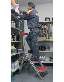 Profesjonalne schody robocze są niezastąpione przy pracach na wysokości, wymagających stabilnej podstawy. Stopnie z profilami antypoślizgowymi. Schody posiadają rozkładaną poręcz z półką na narzędzia. Po złożeniu zajmują niewiele miejsca.