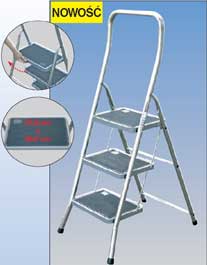 Schodki wykonywane są z rurki aluminiowej. Duże, wygodne metalowe stopnie pokryte są matą antypoślizgową. Zaślepki z tworzywa zabezpieczają końce przed poślizgiem i nie niszczą podłogi. Obciążenie maksymalne 150 kg. Wymiar stopni: 375x250 mm