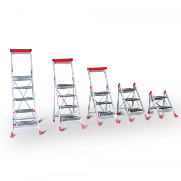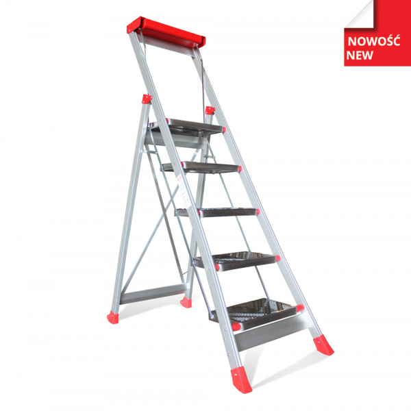 Profesjonalne schody robocze są niezastąpione przy pracach na wysokości, wymagających stabilnej podstawy. Stopnie z profilami antypoślizgowymi. Schody posiadają rozkładaną poręcz z półką na narzędzia. Po złożeniu zajmują niewiele miejsca.