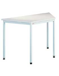 Stelaż biurka wykonany z profili stalowych zamkniętych o przekroju czworokątnym. Stopki z możliwością regulacji. Blat z powłoką z melaminy. Dostarczane w elementach.
