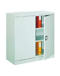 Szafa biurowa posiadająca drzwi skrzydłowe ze schowanymi zawiasami zamykana zamkiem zabezpieczającym. Wykonana z blachy stalowej o grubości od 0,8 do 1,0 mm malowanej lakierem proszkowym w kolorze popielatym ( RAL 7035 ). Posiada dwie przestawne co 25 mm półki. Dostępna także w wersji z drzwiami żaluzjowymi.