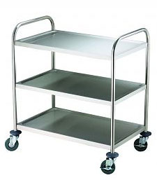Wygodnie wózki kelnerskie, wykonane ze stali nierdzewnej. Wózki posiadają głębokie tłoczenie półek, które sprawia iż są bardzo wytrzymałe jak również zapobiega to przypadkowemu zsunięciu się położonych na nich przedmiotów.