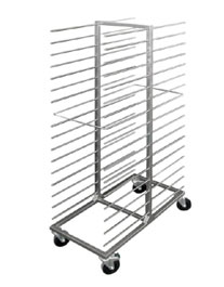 Konstrukcja wózka wykonana z kształtownika kwadratowego 30x30x2 mm. Wysięgniki z pręta o średnicy 12 mm. Wózek posiada 17 poziomów skłądowania tac. Dziesiąty poziom od dołu jest jednocześnie uchwytem do transportu. Wózek wyposażony jest w koła o średnicy 125 mm. Produkt posiada deklarację zgodności z normami i deklarację materiałową.