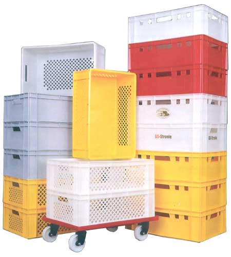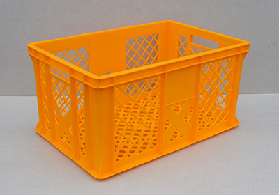 Przystosowane do składowania w stos, pasujące wymiarami do euro-palet. Wykonane z surowca HDPE, odpornego na temperaturę w zakresie -40 do +60 st.C. Nośność przy spiętrzaniu do 350 kg. Pojemniki posiadają atest, dopuszczający je do bezpośredniego kontaktu z żywnością. Wymiary otworów w pojemnikach ażurowych są w kształcie kwadratu o boku 14 mm.