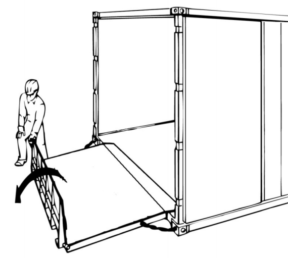 Przed przystąpieniem do pracy, pomost należy przytwierdzić do kontenera lub
