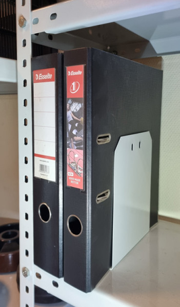 Podpory teczek i segregatorów służą do utrzymywania ich w pionowej pozycji, zapobiegając przewracaniu się. Można ich używać do zaznaczania wolnego miejsca na półce, przygotowanego do włożenia kolejnych dokumentów. Dodatkowo separatory, pozwalają na oddzielenie od siebie różnych rodzajów dokumentów na jednej półce.