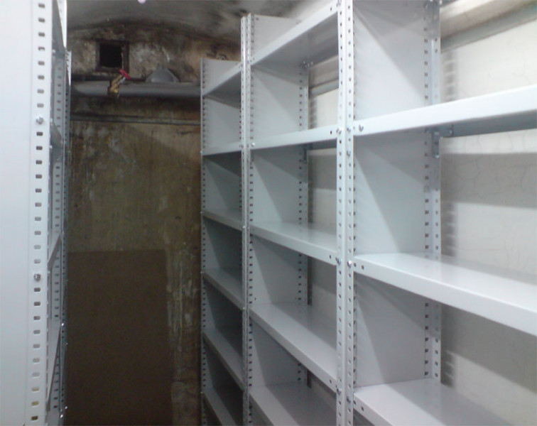 Półki wykonane z blachy stalowej zimnowalcowanej DC 01 o grubości 0,8 mm podwójnie doginanej, o udźwigu na półkę do 100 kg. Szerokość zagięcia półki 35 mm. Na zamówienie można zamówić regały z półkami perforowanymi, wymaganymi w przez służby PPOŻ w pomieszczeniach z tryskaczami. Słupy nośne wykonane z blach gorącowalcowanych S235 , kątownik 35×35×2,0mm perforowany co 30 mm i wyposażony w stopkę z tworzywa. Ściany boczne i tylne wykonane z blachy 0,8mm. Regały posiadają dodatkowo kątowniki wzmacniające, montowane pod najniższą i najwyższą półkę usztywniające całą konstrukcję. Regały są lakierowane proszkowo na kolor szary (RAL 7035). Udźwig całego regału 650 kg.