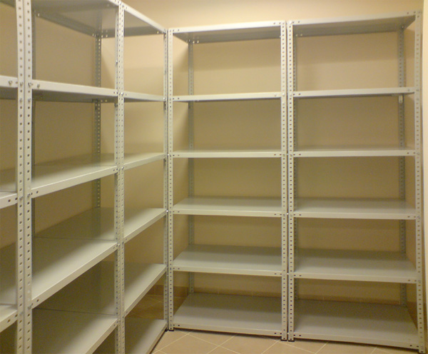 Półki wykonane z blachy stalowej zimnowalcowanej DC 01 o grubości 1,0 mm podwójnie doginanej, o udźwigu na półkę do 100 kg. Szerokość zagięcia półki 35 mm Słupy nośne wykonane z blach gorącowalcowanych S235, kątownik 35×35×2,0mm perforowany co 30 mm i wyposażony w stopkę z tworzywa. Regały posiadają dodatkowo kątowniki wzmacniające, montowane pod najniższą i najwyższą półkę usztywniające całą konstrukcję. Regały są lakierowane proszkowo na kolor szary (RAL 7035). Na zamówienie jest też możliwość zamówienia regałów z półkami perforowanymi, wymaganymi w przez służby PPOŻ w pomieszczeniach z tryskaczami. Jako opcja, regały w wersji ocynkowanej. Udźwig całego regału 650 kg.