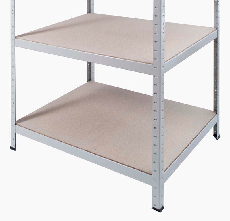 Regały zaczepowe SMJZ wyposażone są w półki wykonane są z płyty wiórowej o grubości 16 mm, spoczywającej na profilach stalowych zakończonych zaczepami o jednostkowym udźwigu na półkę 150 kg. Profile podtrzymujące półkę wykonane są z blachy o grubości 1,5 mm. Słupy nośne wykonane z kątownika perforowanego 35x35x2 mm i wyposażone są w stopkę z tworzywa. Metalowe elementy regału są lakierowane proszkowo na kolor szary. Udźwig całego regału 850 kg.