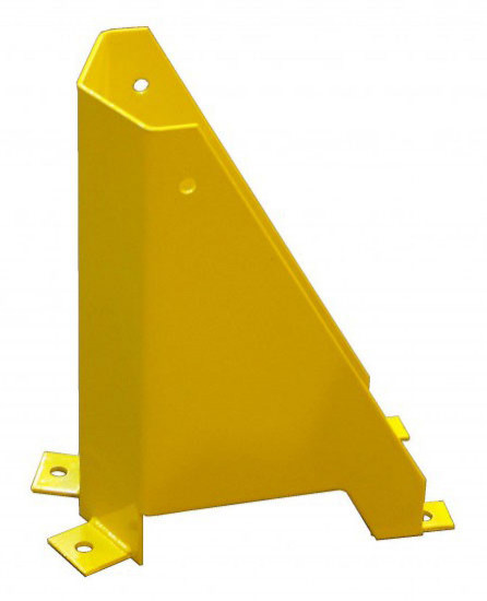 Ochraniacz słupa nośnego w regałach paletowych ma za zadanie zabezpieczyć ramę regału przed uderzeniami przez wózki widłowe. Produkowane są z blachy o grubości 4 lub 5 mm. Szerokość wewnętrzna 160 mm. Kolor żółty RAL 1007. Mocowane są do posadzki czterema kotwami M10/120 o średnicy 10 mm i długości 120 mm. Kotwy są w komplecie z odbojnicą.