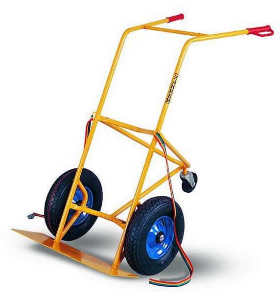 Wózek do transportu beczek z trzecim kołem podporowym, które umożliwia wygodną pracę na dłuższym dystansie.