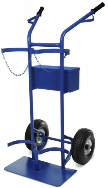 Wózek spawalniczy, przeznaczony do tranportu butli gazowych. W wyposażeniu znajduje się zamykana skrzynka na akcesoria. Koła pneumatyczne doskonale nadają się do jazdy zarówno po utwardzonych nawierzchniach jak i grząskim, nierównym terenie. Duża średnica kół ułatwia podjazdy na krawężniki i stopnie schodów.