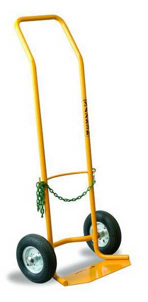Wózek do pojedynczej butli gazowej na kołach pneumatycznynych lub lanych. Koła pneumatyczne doskonale nadają się do jazdy zarówno po utwardzonych nawierzchniach jak i grząskim, nierównym terenie. Duża średnica kół ułatwia podjazdy na krawężniki i stopnie schodów. Koła lane przeznaczone są do jazdy po twardych nawierzchniach.