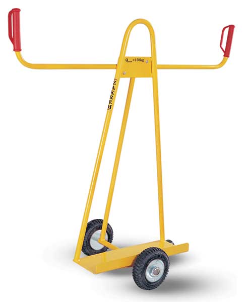 Wózek do przewozu płyt wielkoformatowych. Koła pneumatyczne dostkonale nadają się do jazdy zarówno po utwardzonych nawierzchniach jak i grząskim, nierównym terenie. Duża średnica kół ułatwia podjazdy na krawężniki i stopnie schodów.