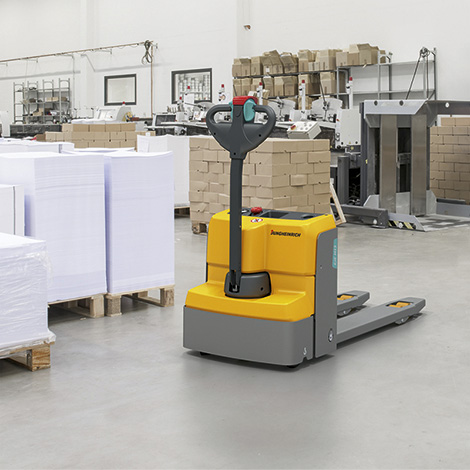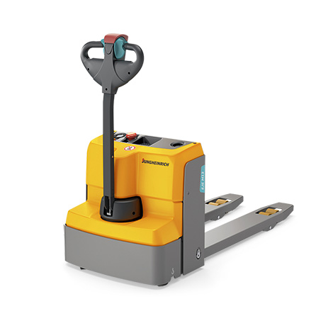 Wózki transportowe EJE przeznaczone są do sporadycznego transportu palet w magazynie. Maksymalny ciągły czas pracy tymi wózkami wynosi 2 godziny. Dzięki niewielkim rozmiarom doskonale sprawdza się podczas manewrów na ograniczonej powierzchni. Dodatkową stabilność zapewniają mu rolki podporowe umieszczone po bokach koła napędowego. Ergonomiczny kształt dyszla i możliwość obsługi zarówno prawą, jak i lewą ręką zapewniają wysoki komfort użytkowania. Bezobsługowy akumulator żelowy, wbudowany prostownik i praktyczne schowki na drobiazgi dodatkowo ułatwiają codzienną pracę wózkiem. Silnik jazdy o mocy 0,6 kW wyraźnie odciąża operatora podczas transportu palet i ładunków o masie do 1,3 lub 1,5 tony. Wszystko razem sprawia, że wózek EME jest idealnym urządzeniem do pracy w handlu detalicznym, sklepach spożywczych, marketach budowlanych itp.