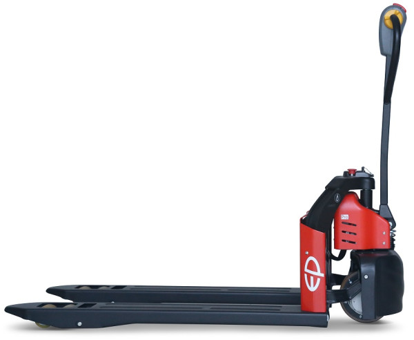 Akumulatorowy wózek paletowy, dzięki swoim niewielkim gabarytom, doskonale nada się do pracy zarówno w średnich magazynach, sklepach spożywczych jak i samochodach dostawczych. Wyposażony jest w silnik napędowy o mocy 0,65 kW oraz baterię litowo-jonową. Na chwilę obecną jest to najmniejszy elektryczny wózek paletowy, który waży zaledwie 130 kg.