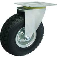 Wózki transportowe PZM na kołach pneumatycznych pozwalają na wygodny transport towarów po nierównych nawierzchniach. Wszystkie elementy stalowe malowane są lakierami proszkowymi. Podłoga wykonana jest z wodoodpornej i antypoślizgowej sklejki impregnowanej. Koła polskie - łożyska wałeczkowe, czarna opona.