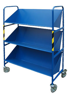 Wózki przeznaczone do transportu i konfekcjonowania korespondencji, akt oraz towarów o mniejszych gabarytach. Półki ustawione pod kątem zabezpieczającym akta przed wypadaniem. Wózek posiada dwa koła stałe oraz dwa koła obrotowe które są wyposażone w hamulce.