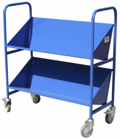 Wózki przeznaczone do transportu i konfekcjonowania korespondencji, akt oraz towarów o mniejszych gabarytach. Półki ustawione pod kątem zabezpieczającym akta przed wypadaniem. Wózek posiada dwa koła stałe oraz dwa koła obrotowe które są wyposażone w hamulce.