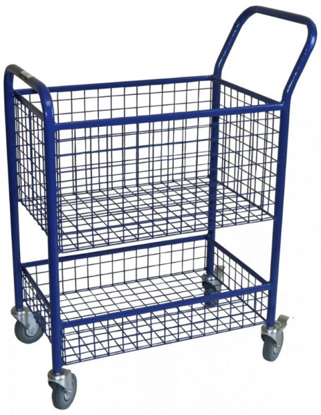 Wózki przeznaczone do przewożenia dokumentów oraz transportu i konfekcjonowania artykułów drobnicowych. Solidna i trwała konstrukcja wykonana jest z rur stalowych malowanych proszkowo, siatki o wymiarach oczka 40x40 oraz z drutu o średnicy 3 mm. Wszystkie koła wózka są obrotowe w tym dwa z hamulcami.