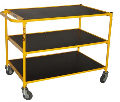 Wózek przeznaczone do transportu i konfekcjonowania artykułów drobnicowych. Konstrukcja metalowa wykonana jest z rur stalowych malowanych proszkowo. Półki wykonane są z wodoodpornej i antypoślizgowej sklejki. Wszystkie koła wózka są obrotowe. Udźwig półki to 50 kg.