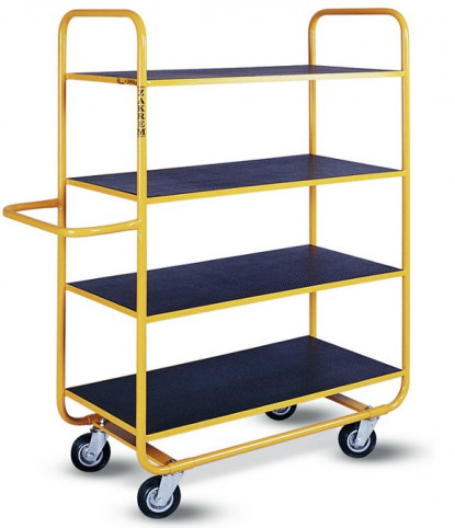 Wózki cztero-półkowe przeznaczone są do transportu i konfekcjonowania towarów. Wózek może także służyć jako regał mobilny. Konstrukcja metalowa wykonana jest z rur stalowych malowanych lakierem proszkowym. Półki wykonane są z gładkiej lub antypoślizgowej sklejki. Udźwig każdej półki 100 kg. Standardowo montowane są dwa koła skrętne i dwa stałe.
