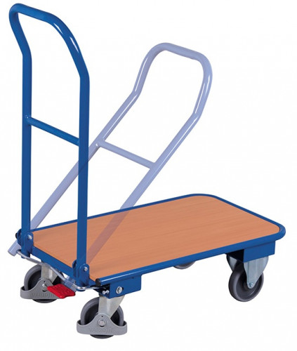 Uniwersalne wózki platformowe do różnego rodzaju zadań transportowych. Blaty wózka wykonane są z wodoodpornej płyty drewnopodobnej. Wózek malowany proszkowo farbą RAL 5010 (niebieski). Wyposażone są w koła na łożyskach kulkowych, z szarej gumy termoplastycznej, niebrudzącej. Produkt w standardzie posiada 2 koła obrotowe, centralny hamulec EasySTOP i 2 koła stałe. Dzięki łatwemu składaniu rączki, wózki można wygodnie przewozić w samochodach osobowych. Istnieje też możliwość wykonania w wersji aluminiowej.