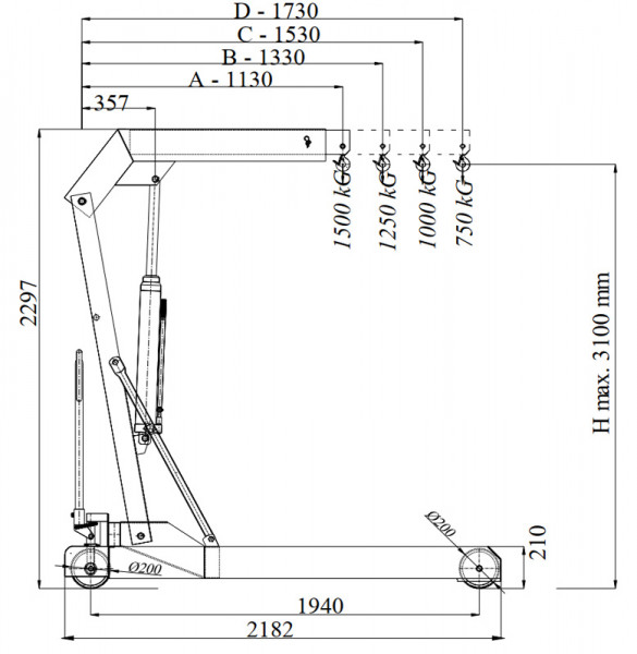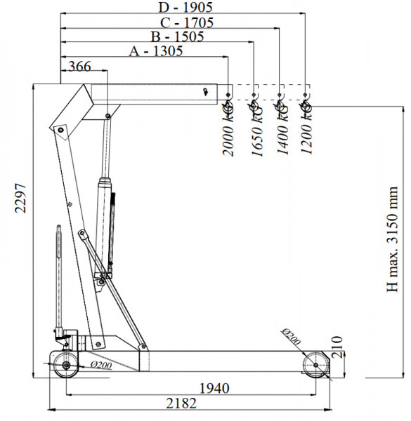 Warsztatowe żurawie hydrauliczne o dużym udźwigu. Podnoszenie ramienia odbywa się za pomocą jednostopniowej pompy ręcznej. Płynność opuszczania zapewnia precyzyjny zawór. Ramię posiada cztery stopnie regulacji długości. Podpory w kształcie litery "U".