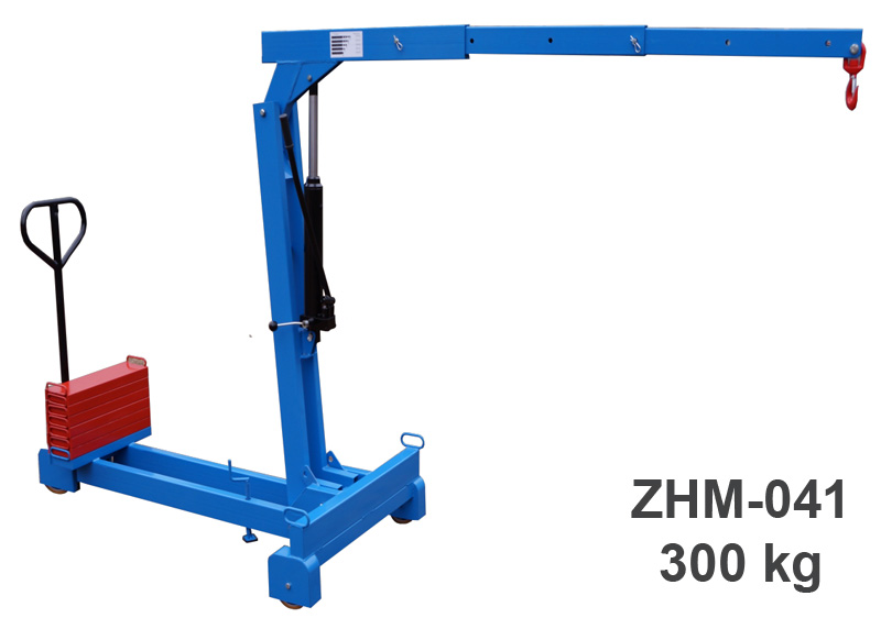 Przejezdne żurawie warsztatowe. Podnoszenie ramienia odbywa się za pomocą jednostopniowej pompy ręcznej. Płynność opuszczania zapewnia precyzyjny zawór. Ramię w zależności od modelu posiada kilka stopni regulacji długości i nośności.